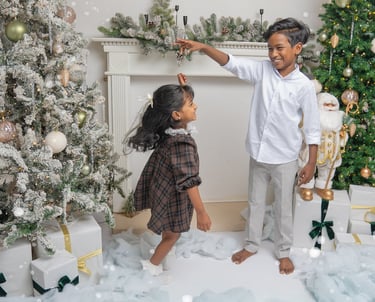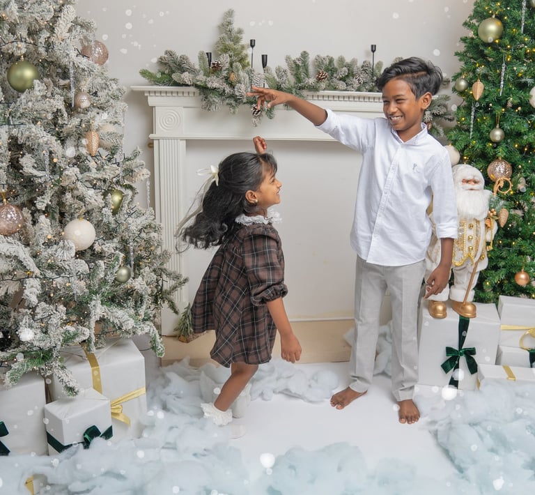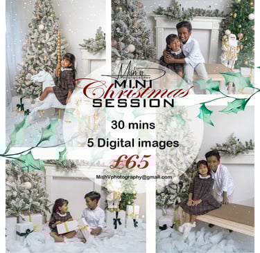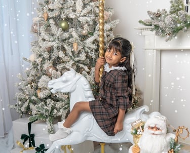 A Christmas Mini Shoot is a short, festive photography session designed to capture the magic and joy of the holiday season. Perfect for families, couples, or individuals, these sessions offer a quick and affordable way to create cherished memories and beautiful holiday cards. With a beautifully designed White Christmas set and a fun, relaxed atmosphere, it's a delightful way to celebrate and share the spirit of Christmas!
